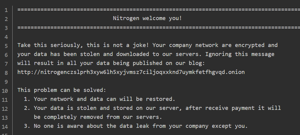The Nitrogen ransom note is like most others. It has an introduction that explains what happened: