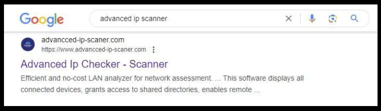 Malicious ad for Advanced IP Scanner, leading to the domain www[.]advanCCed-ip-scaNer[.]com. Notice the incorrect spelling in the fake download site. The legitimate domain is www.advanced-ip-scanner.com. Via Trustwave