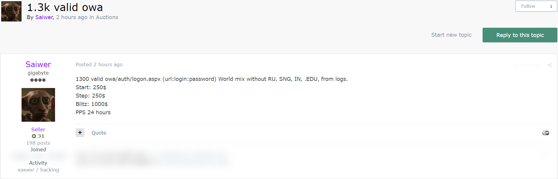 ULP file of Outlook Web Access accounts advertised on dark web. Via Darkwebinformer