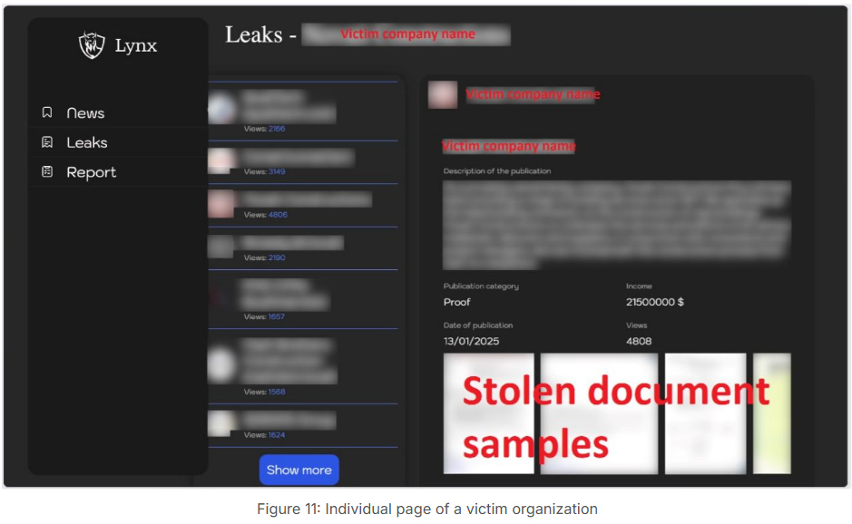 Screenshot of Lynx ransomware link site, via Fortinet