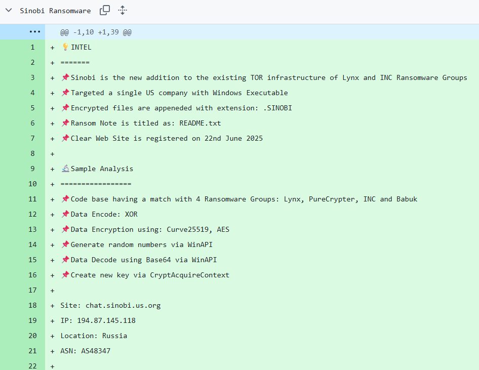 Sinobi is widely believed to be a rebrand, successor, or offshoot of Lynx ransomware. The Lynx leak site design is just one piece of supporting evidence for this: